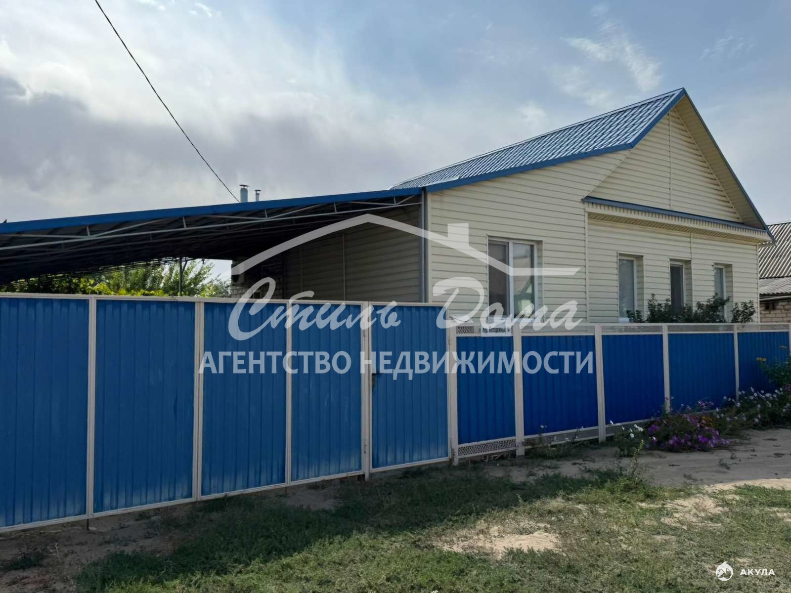 Дом обшит сайдингом, крыша металлочерепица. Во дворе большой навес площадью 50 м2 для заезда авто. Во дворе газон, плодовые деревья. Хоз. постройки с пластиковыми дверьми и окном (сарай, погреб). Выведен полив по огороду.
