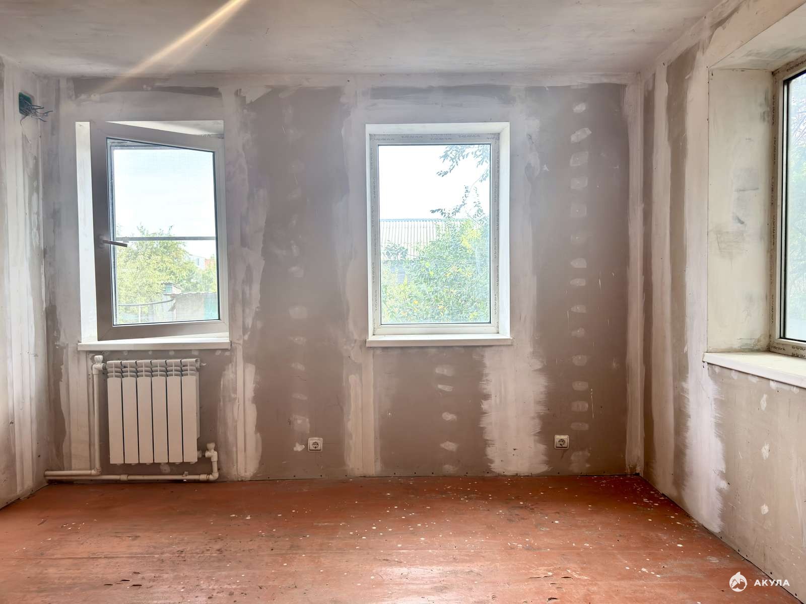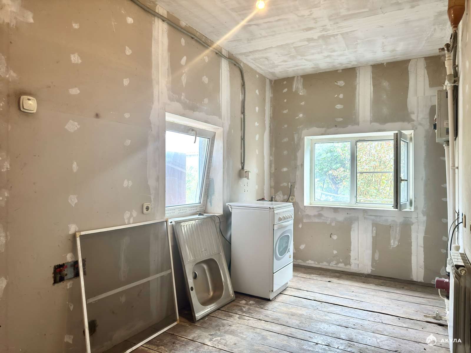 В доме установлены стеклопакеты, черновая отделка.