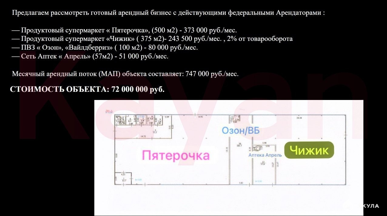 « Пятерочка» (500 м2) - 373 000 руб/мес