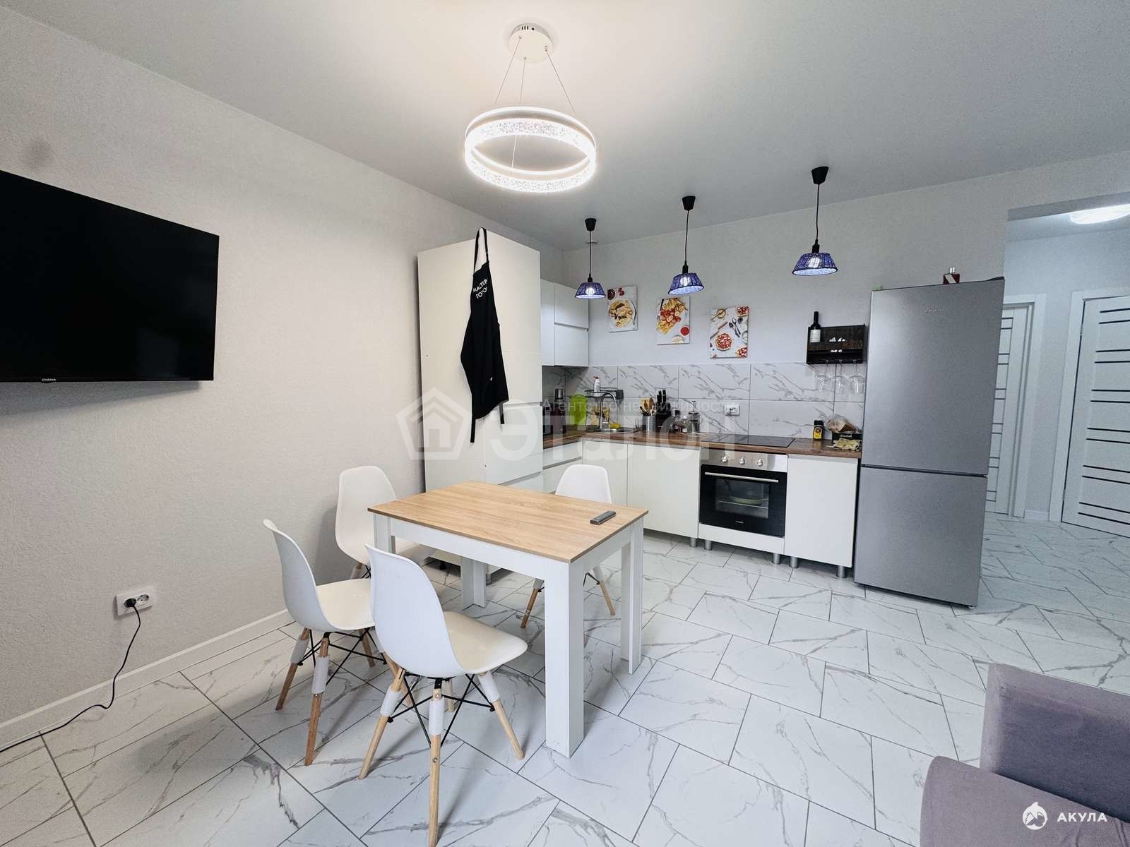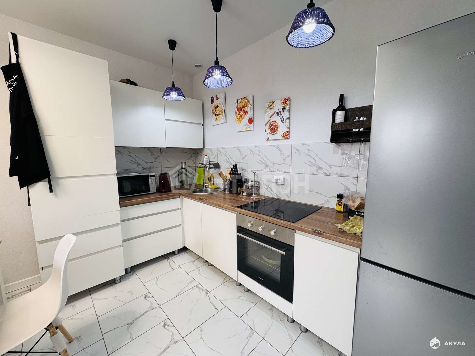 При продаже остается кухня с техникой, спальня.