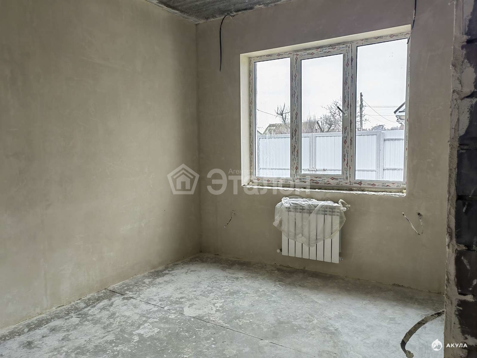Стены оштукатурены, уложен водный тёплый пол, залита сухая стяжка, установлены радиаторы,