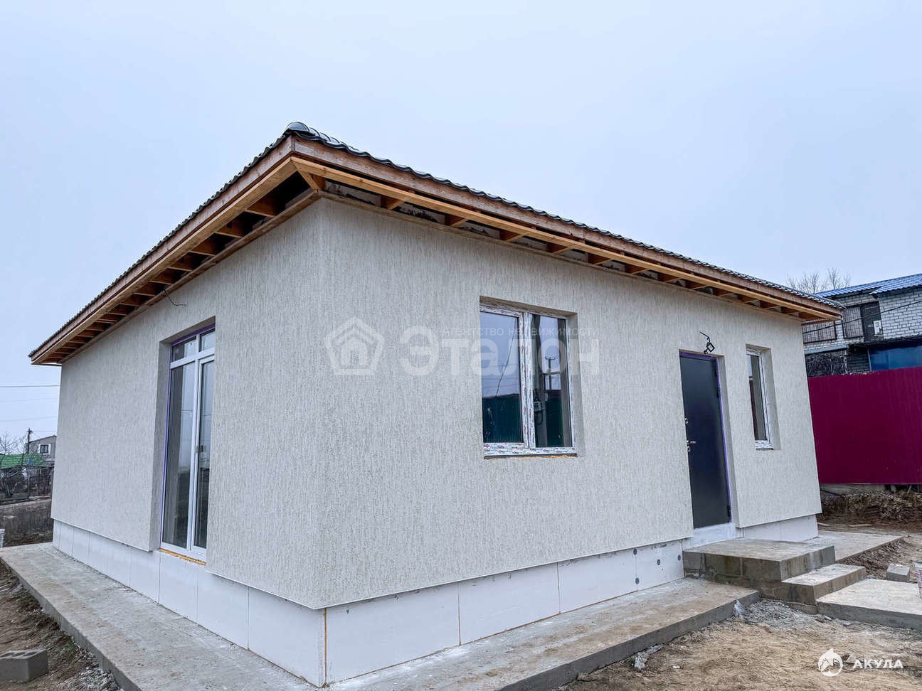 Дом построен из блока + утеплитель 100мм и бетонная штукатурка