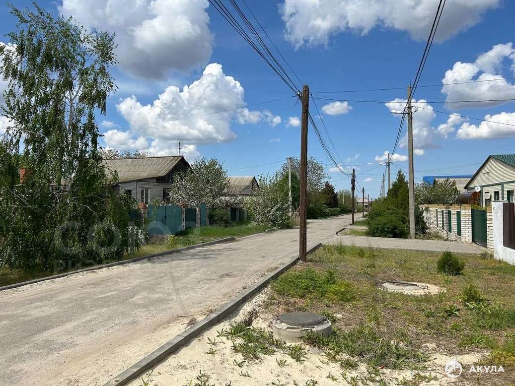 Земельный участок РОВНЫЙ, 10 соток. На нем расположены много фруктовых деревьев и кустарников, вальер и курятник для содержания домашних животных, деревянный подиум под бассейн.