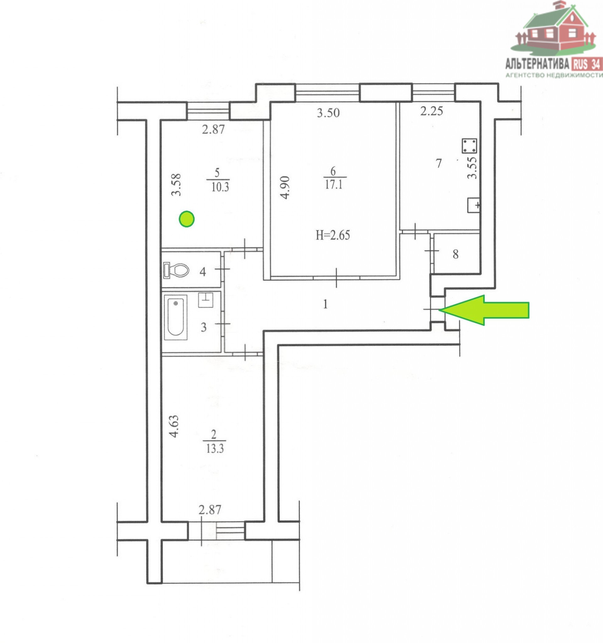Санузел раздельный. Кухня 8 кв.м.