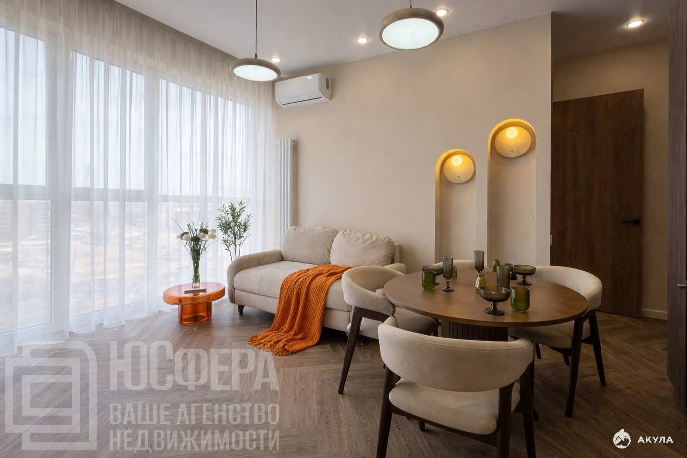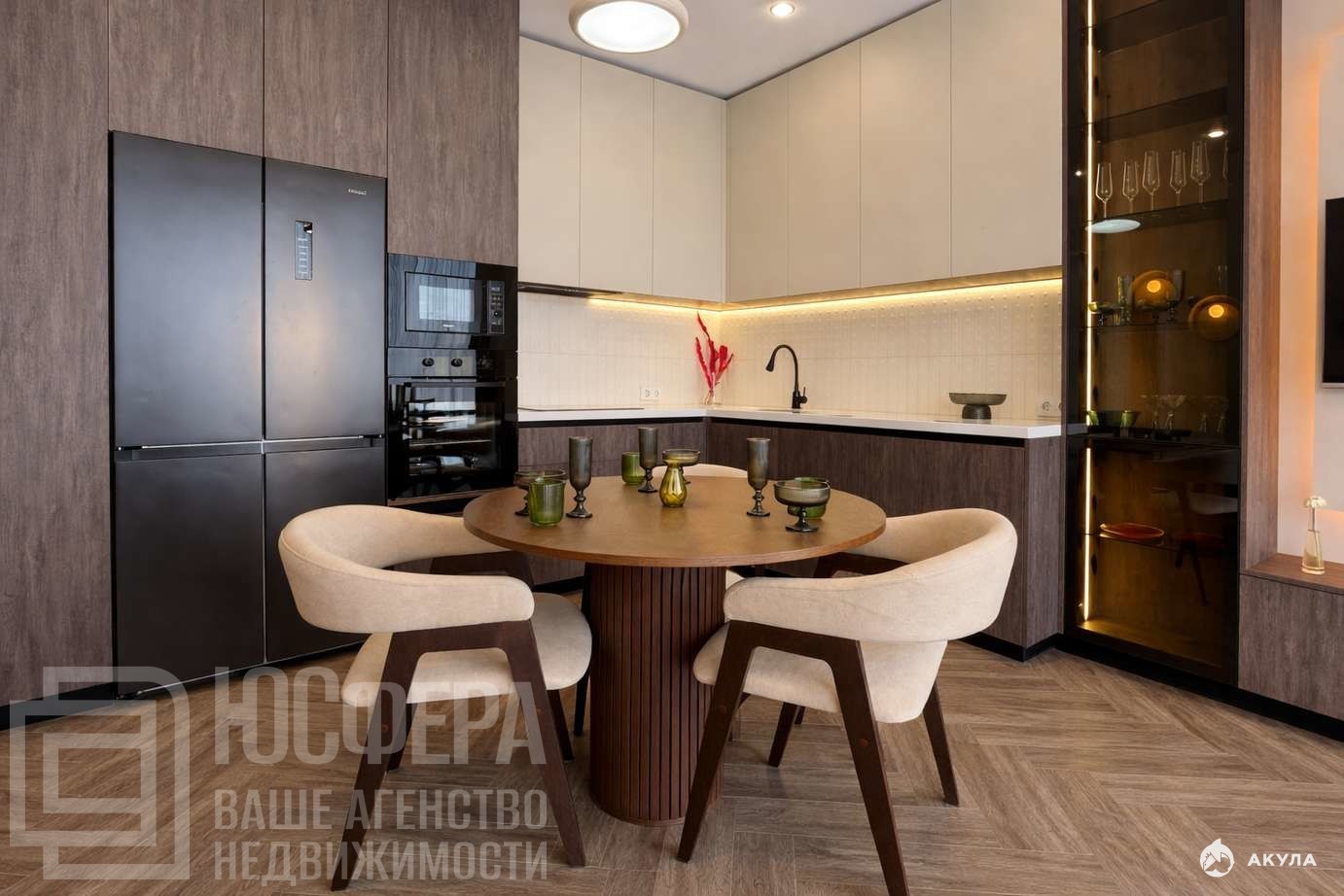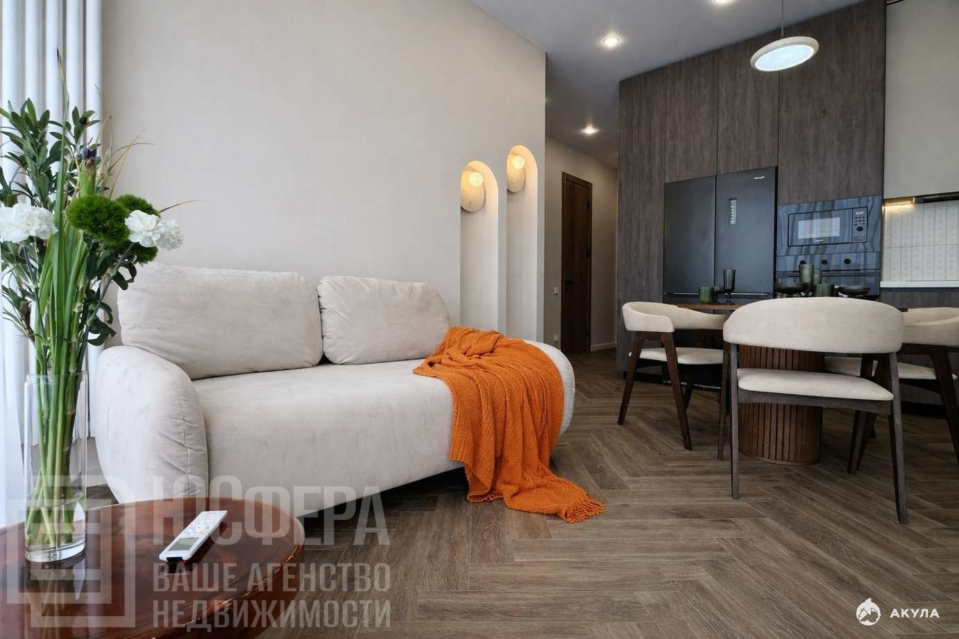 Квартира выполнена в единой дизайнерской концепции