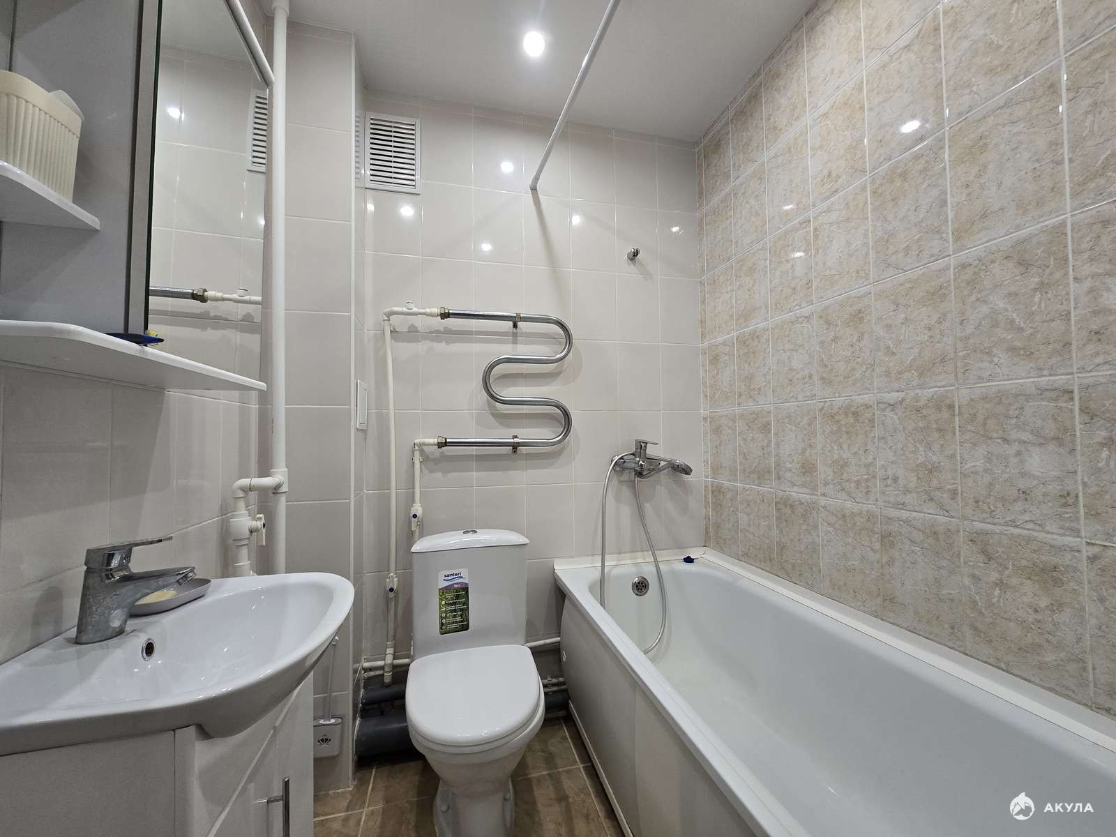 Совмещённый санузел, установлены счетчики.
