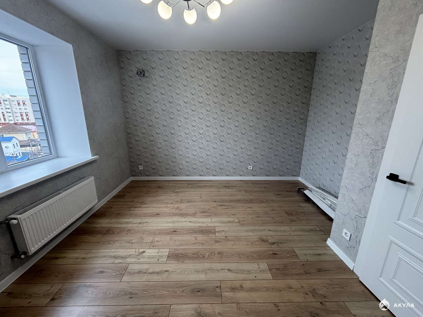 Пластиковые окна, на полу ламинат, натяжные потолки, немецкие обои, керамогранит в ванной, установлены современные межкомнатные двери, качественная входная дверь.