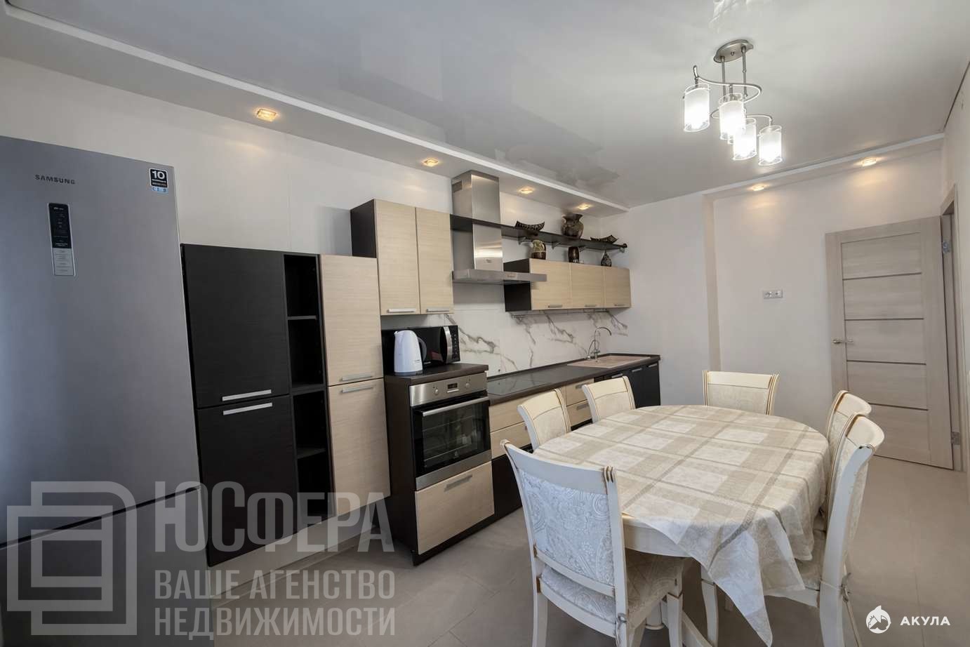 • большая кухня со всей необходимой встроенной техникой