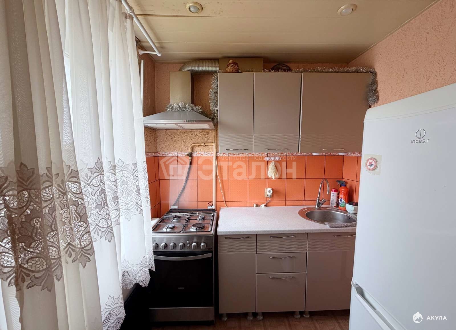 Общая площадь 30, 8 кв.м., жилая 17, 7 кв.м., кухня 5, 4 кв.м.