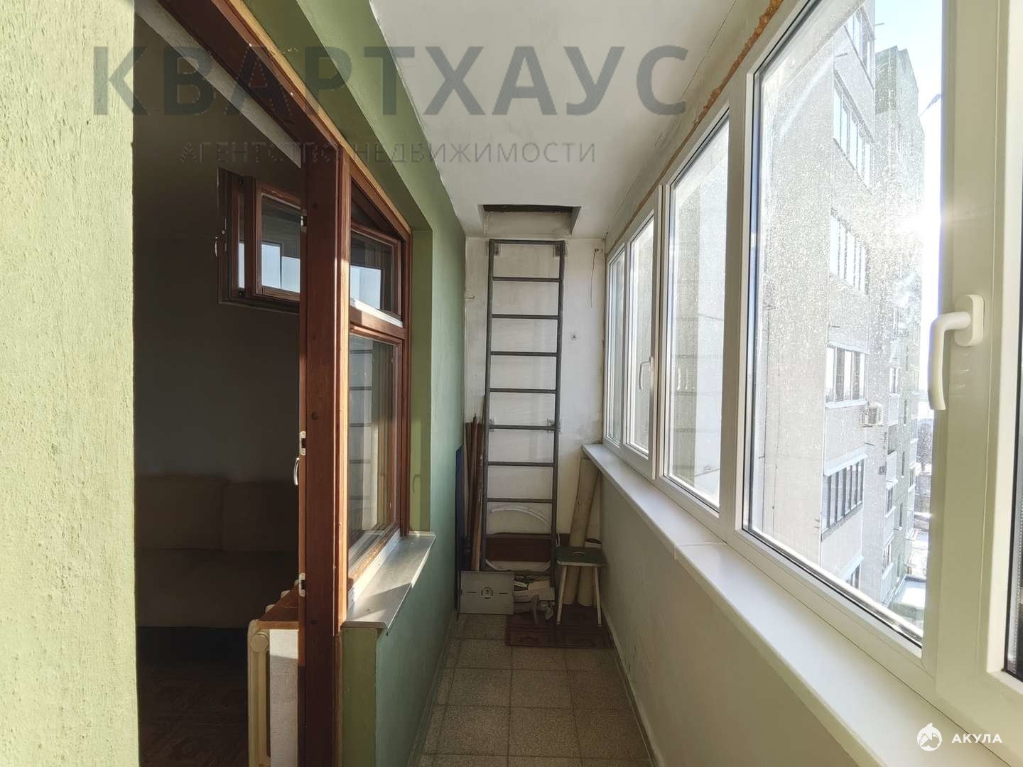 Отдельная полноценная кухня площадью 8 кв.м. По периметру всей комнаты - балкон.