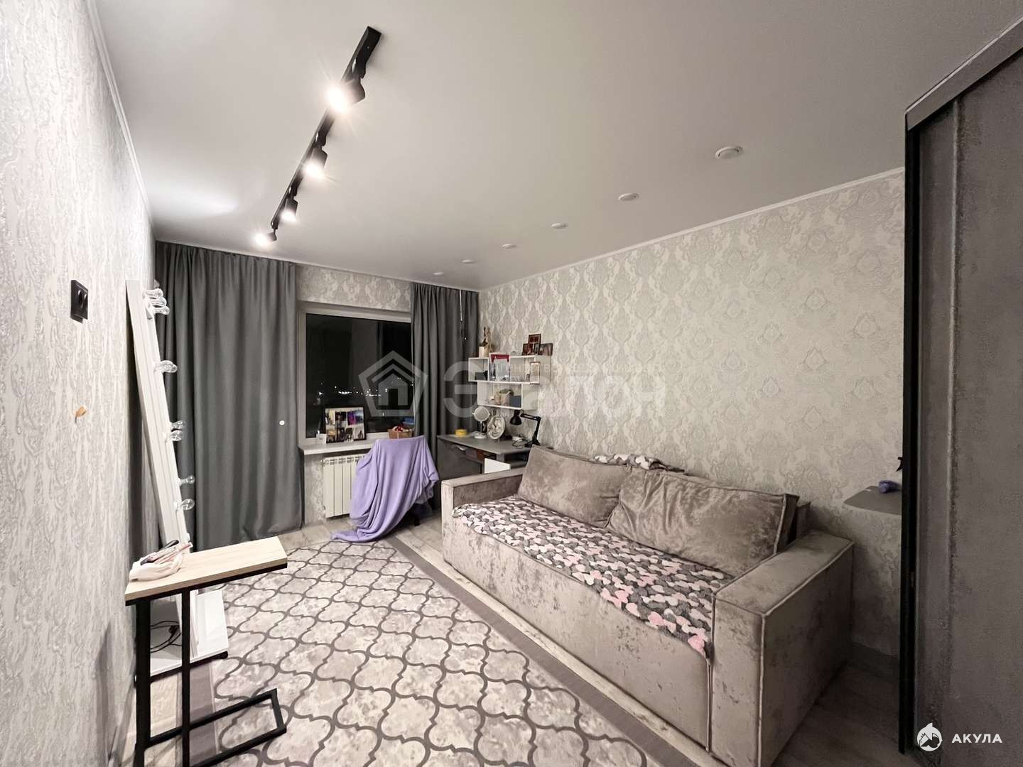 Новая мебель: вместительный шкаф купе, диван в гостиной, мебель в коридоре и на кухне, Сплит система, все остается покупателю.