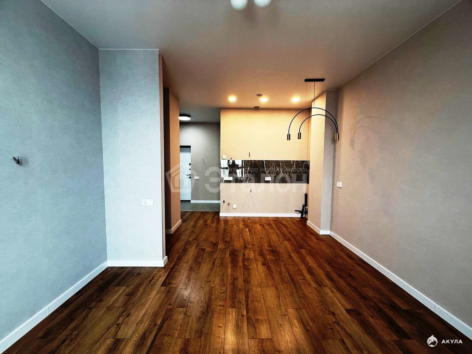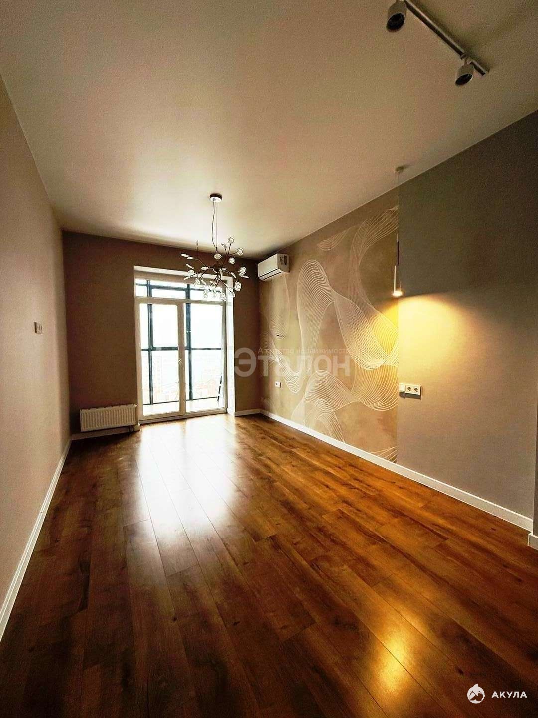 В квартире выполнен изысканный дизайнерский ремонт с использованием исключительно качественных материалов. В прихожей, ванной и санузле на полу уложена стильная плитка, в комнатах — качественный ламинат, создающий уютную атмосферу. Натяжные потолки придают интерьеру современный и элегантный вид.