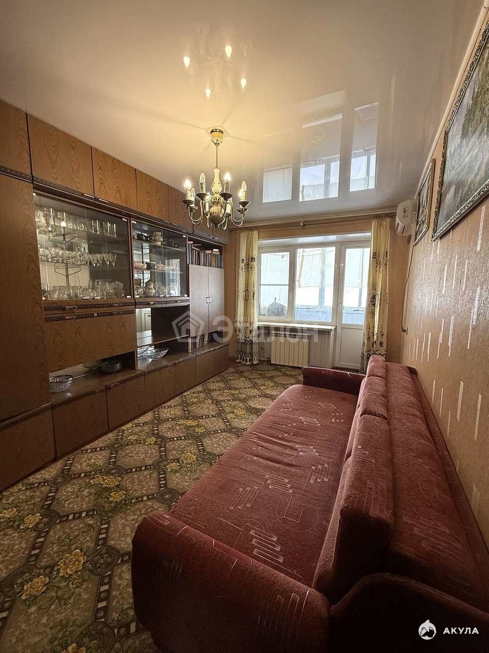 Есть застеклённая лоджия. Натяжные потолки есть в гостиной, коридоре и кухне.