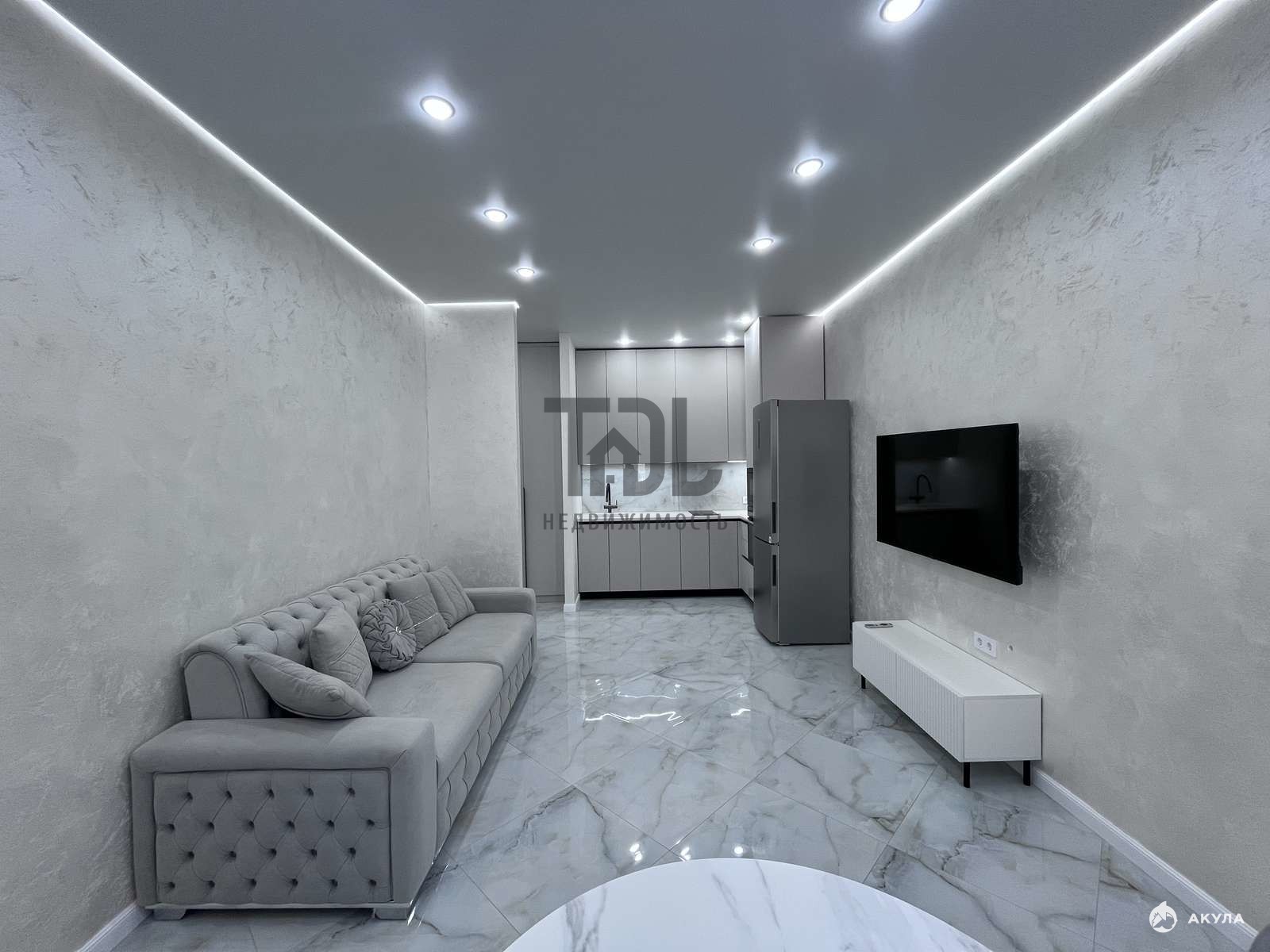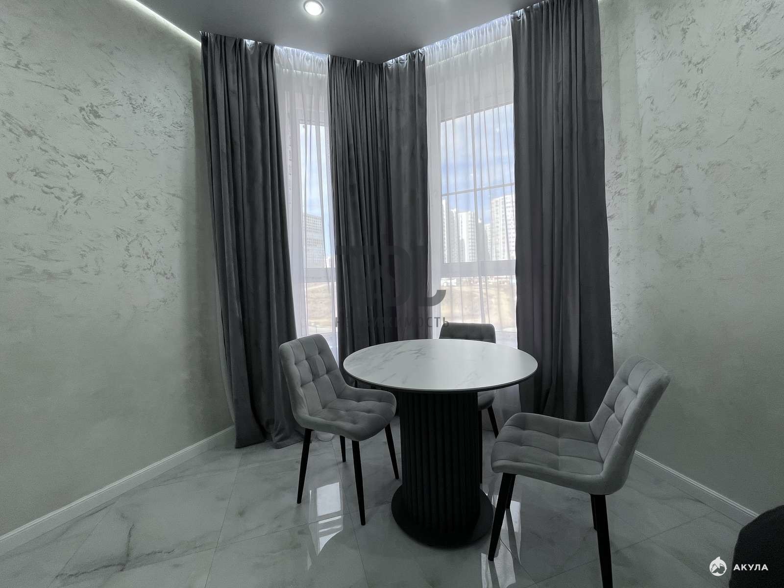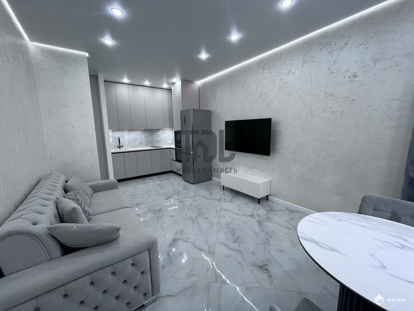 Общая площадь квартиры — 44, 2 кв.м., из которых жилая площадь составляет 20 кв.м., а кухня — 10 кв.м. Кухня-гостиная выполнена в современном стиле с евроремонтом, что позволяет сразу же заселиться и наслаждаться комфортом. Санузел совмещенный, всего один санузел.