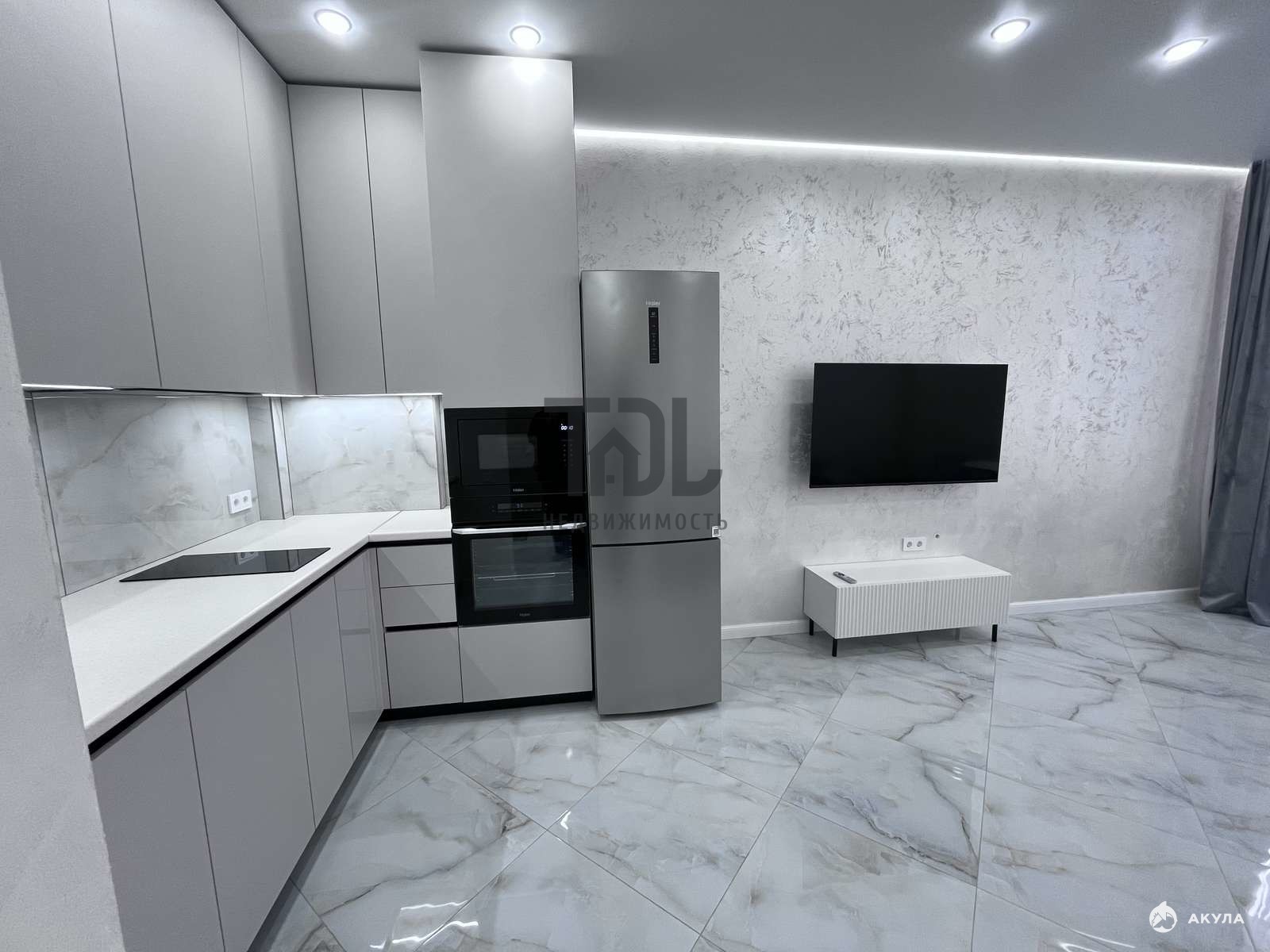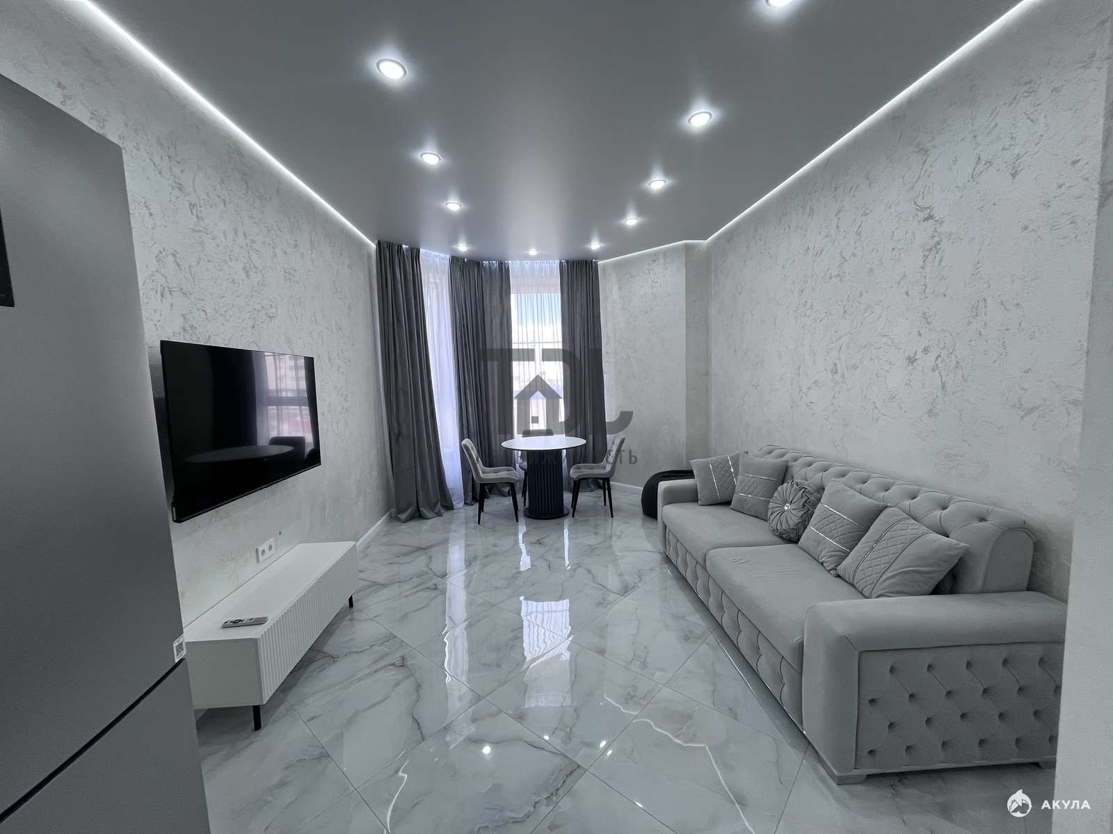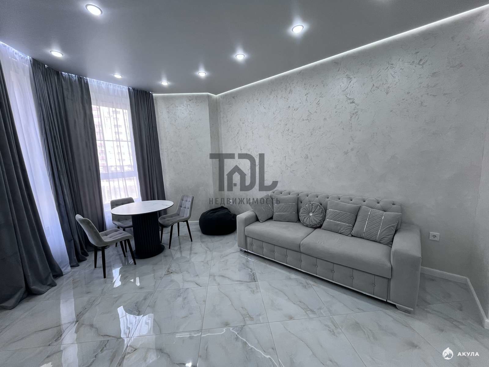 Общая площадь квартиры — 44, 2 кв.м., из которых жилая площадь составляет 20 кв.м., а кухня — 10 кв.м. Кухня-гостиная выполнена в современном стиле с евроремонтом, что позволяет сразу же заселиться и наслаждаться комфортом. Санузел совмещенный, всего один санузел.