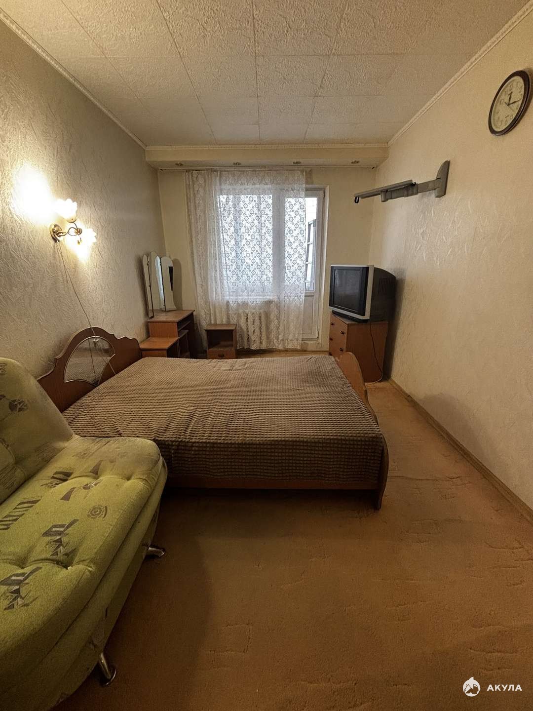 Пластиковые окна, на полу ковролин и линолеум, лоджия застеклена и утеплена, видеонаблюдение.
