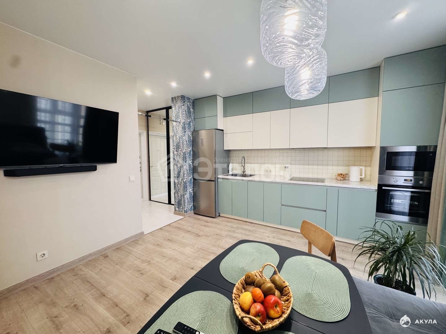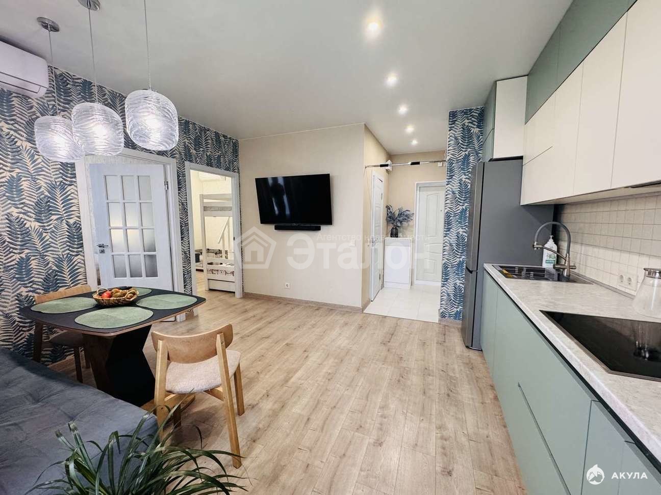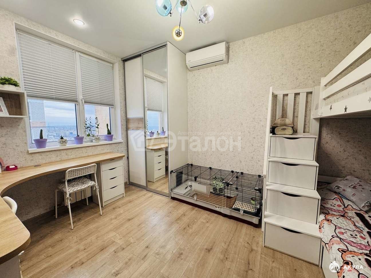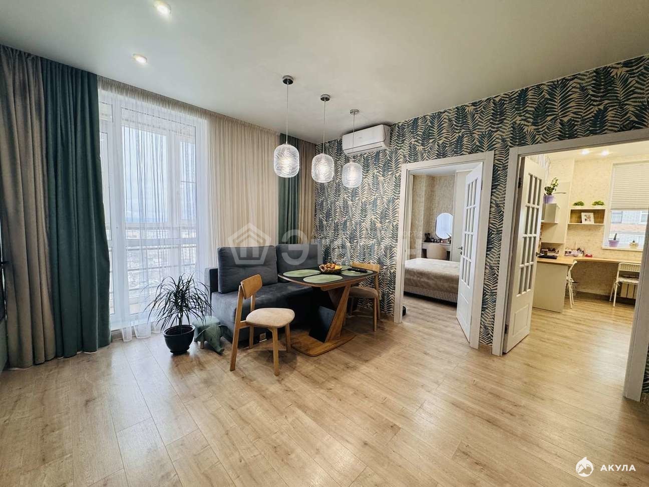 Квартира с дизайнерским ремонтом. На полу ламинат 33 класса, на стенах немецкие дорогие обои. Дизайнерское освещение. Три сплит-системы.