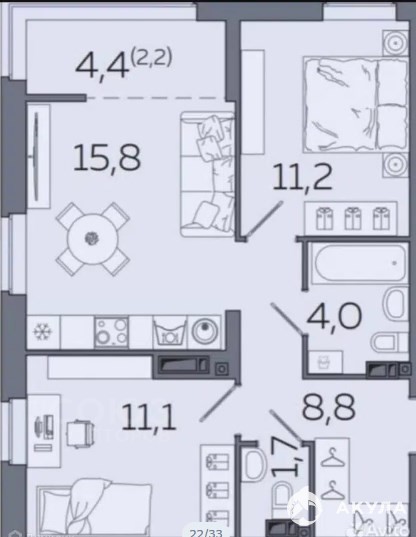 Общая площадь - 55 м2 Жилая - 23 м2 Кухня - 16 м2 Лоджия - 5 м2