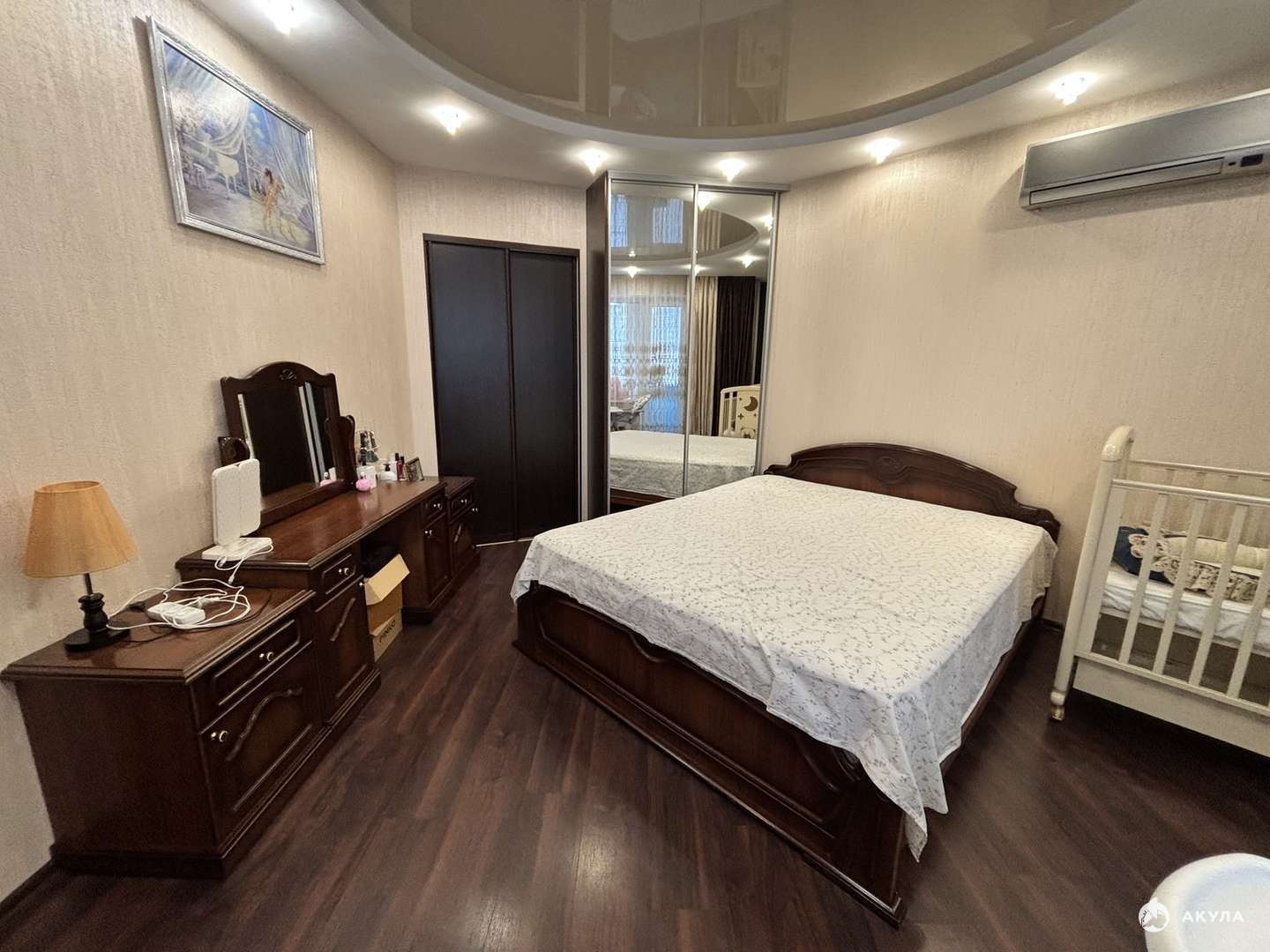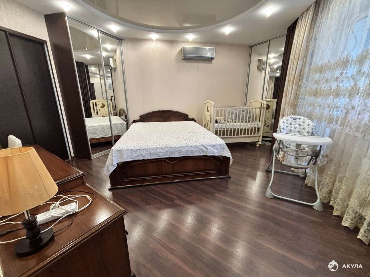 При продаже остается мебель и техника : кухонный гарнитур, газ.плита, духовой шкаф, сплит-система, посудомоечная машина, диван в спальной комнате, полностью мебель в детской, три больших шкафа. На окнах остаются замечательные шторы. Остальная мебель по договоренности.