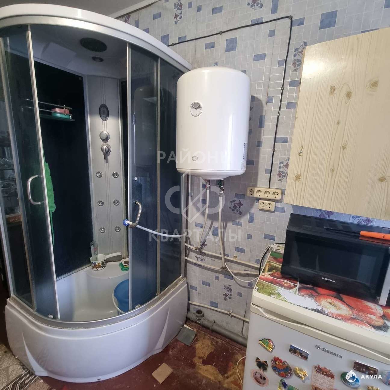 В газифицированном помещении 1 просторная комната, кухня( с душевой кабиной) , коридор. Жилое состояние. Электричество, газ, септик, центральное водоснабжение.