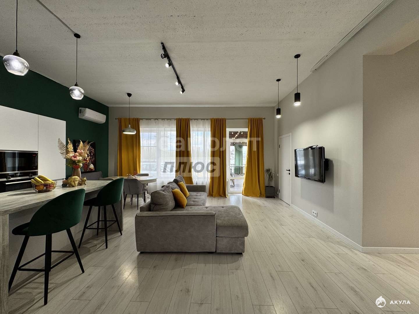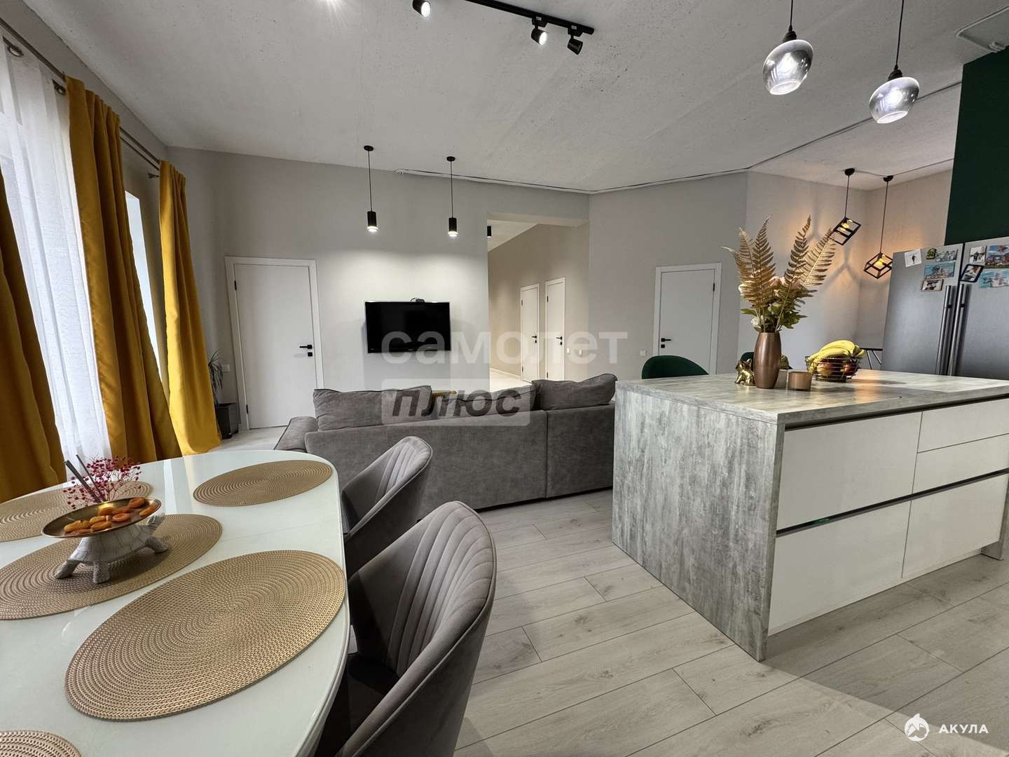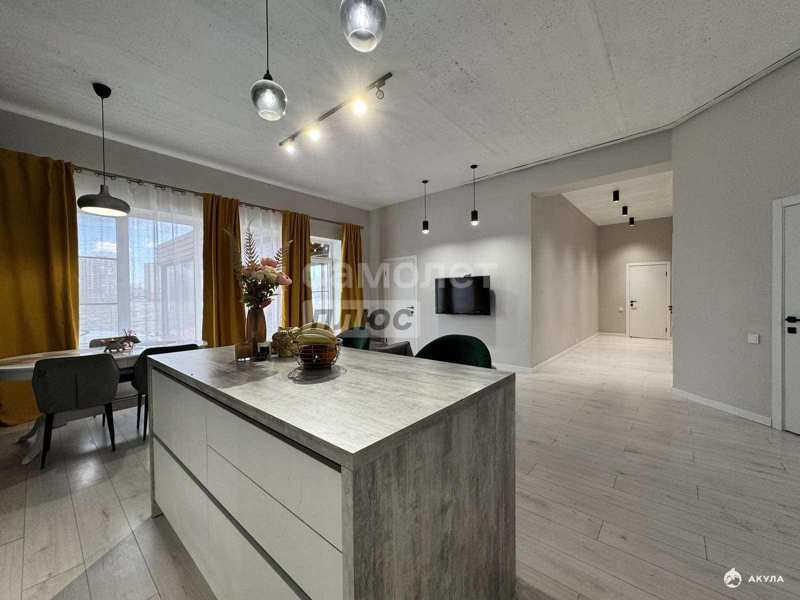 Три изолированные комнаты, кухня гостиная, просторный хол, терраса с мягкими окнами!