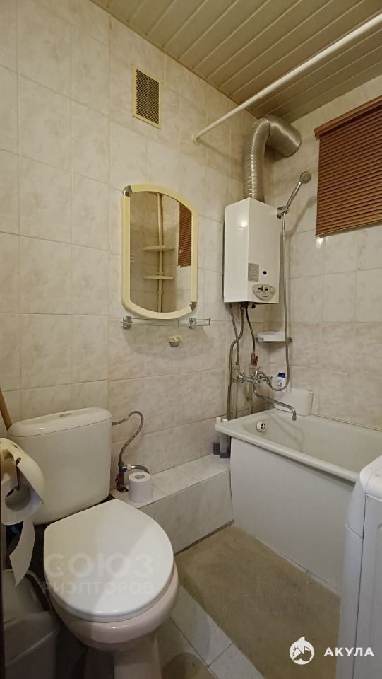 В квартире есть необходимое для комфортного проживания: мебель в комнате и на кухне , кондиционер, холодильник, стиральная машина, санузел совмещённый , установлена ванна.