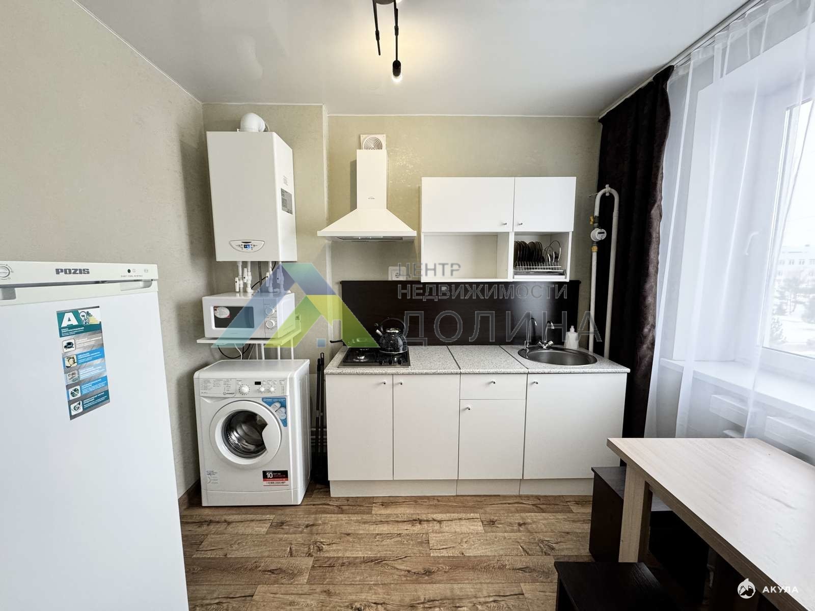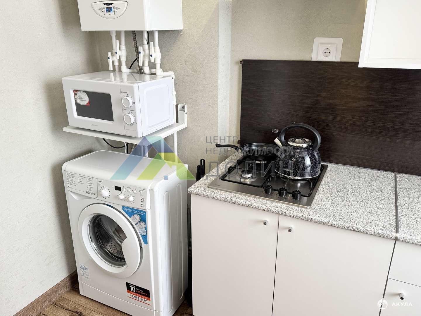 - В квартире есть вся необходимая мебель и техника: кухонный гарнитур с минимальным набором посуды, варочная поверхность, холодильник, микроволновая печь, стиральная машина, стол, стулья, диван, телевизор, шкаф, комод, глад.доска, утюг, стеллаж, прихожая, сплит-система;
