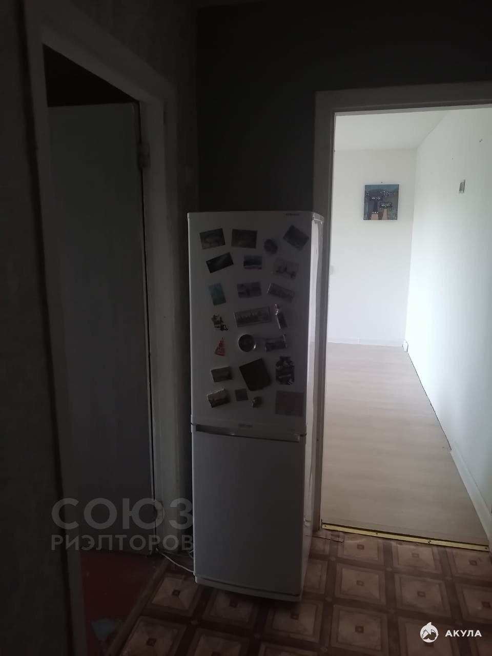 в кухне холодильник.
