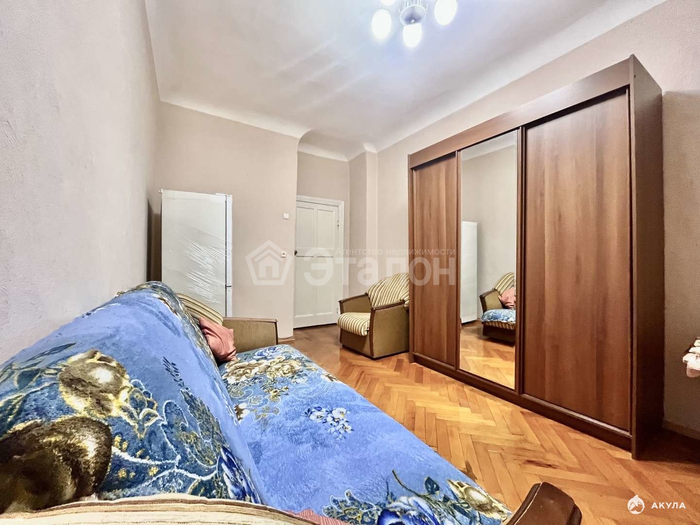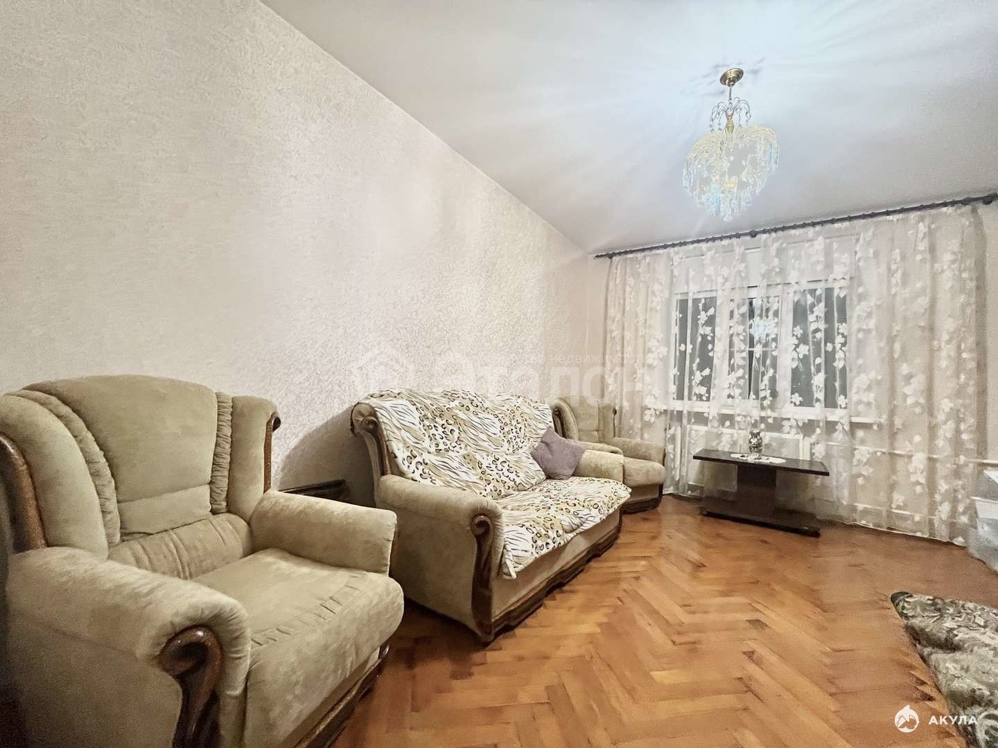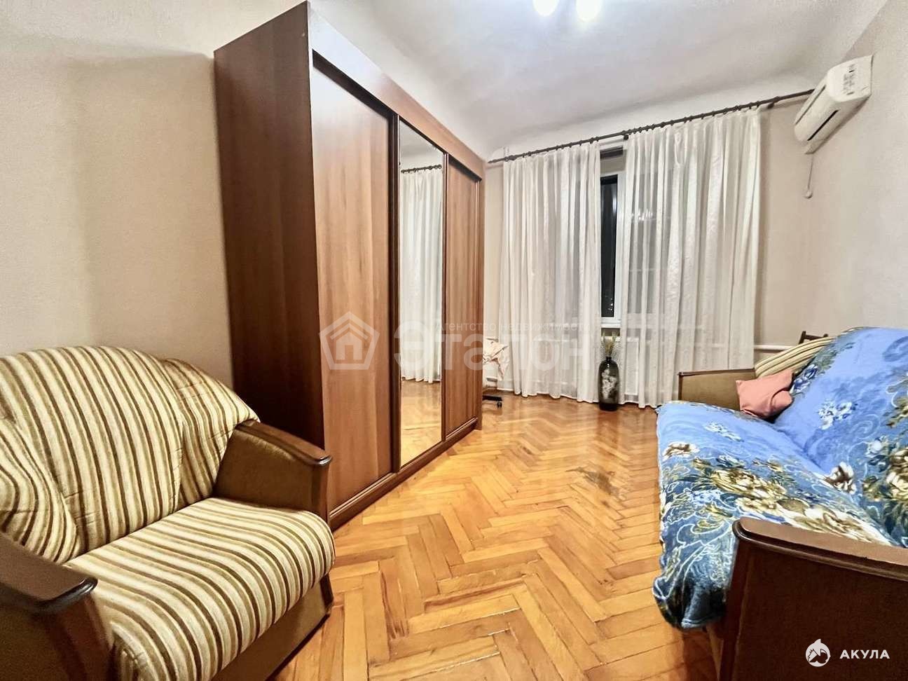Из мебели: два дивана, кресла, шкаф-купе, прихожая, кухня.