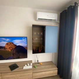 Есть все для комфортного проживания: диван, встроенный шкаф-купе с большим зеркалом, телевизор, письменный стол; Так же вся необходимая бытовая техника: плита, холодильник, чайник, стиральная машина, утюг, фен. Расположение дома очень хорошее, буквально вся...